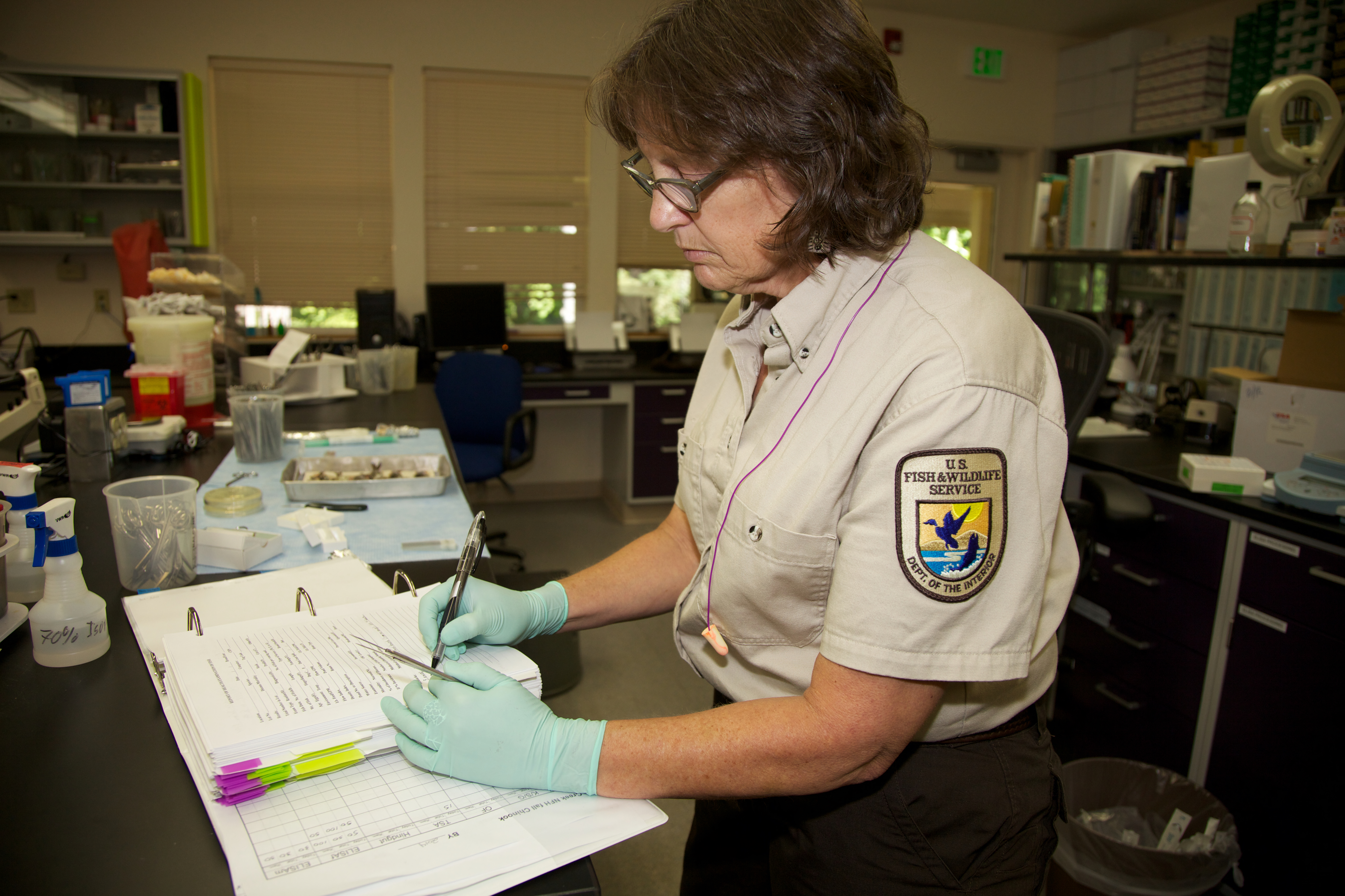 Scientists from the U.S. Fish and Wildlife Service at the Lower Columbia River Fish Health Center conduct genetics, fish health and DNA testing. Pacific Northwest Fisheries.