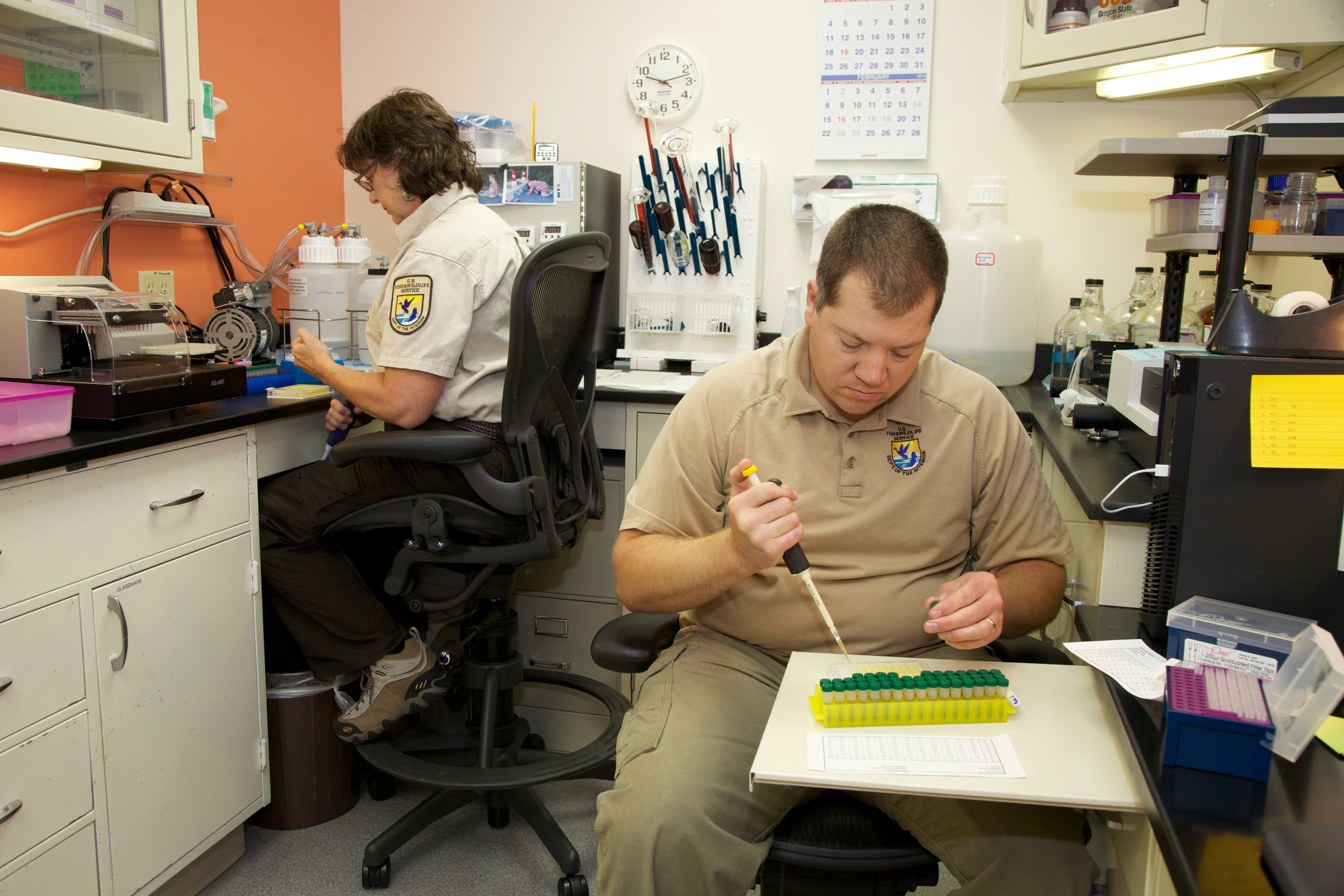 Scientists from the U.S. Fish and Wildlife Service at the Lower Columbia River Fish Health Center conduct genetics, fish health and DNA testing. Pacific Northwest Fisheries.