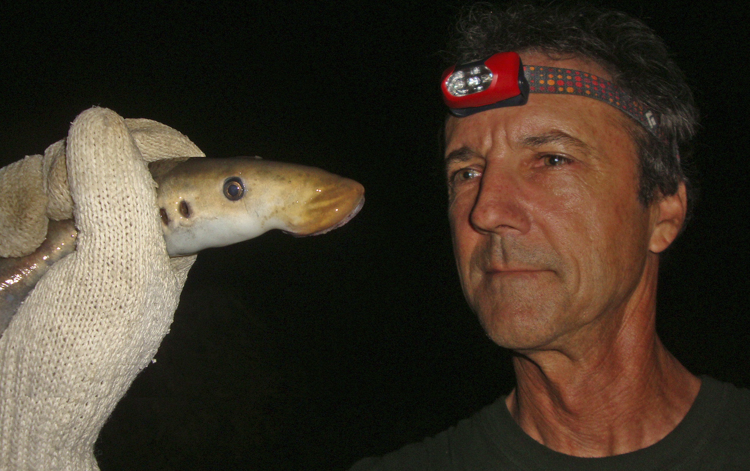 Scott Harris, California Department of Fish and Wildlife fisheries biologist, displays a lamprey at the Van Arsdale Fisheries Station, Potter Valley, Calif. “Their whole life history and biology is just so different from any other fish. We’re learning something different every day," he said. Credit: CDFW
