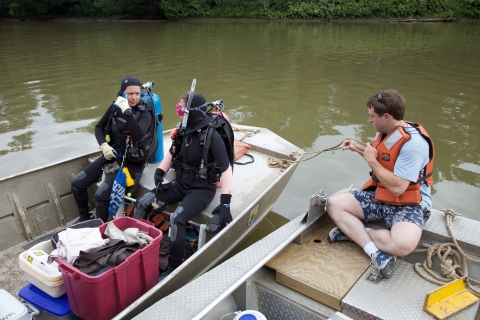 Scuba diving for freshwater mussel survey