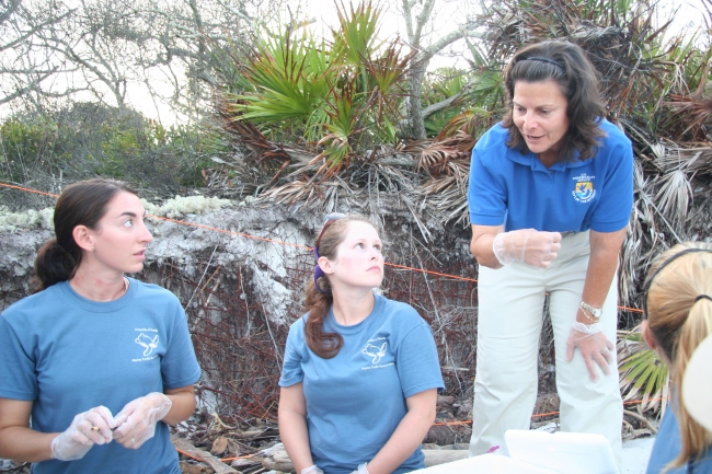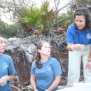 Port St. Joe, FL: USFWS biologist Lorna Patrick leans in to give some advice to graduate students Natalie and Brail.