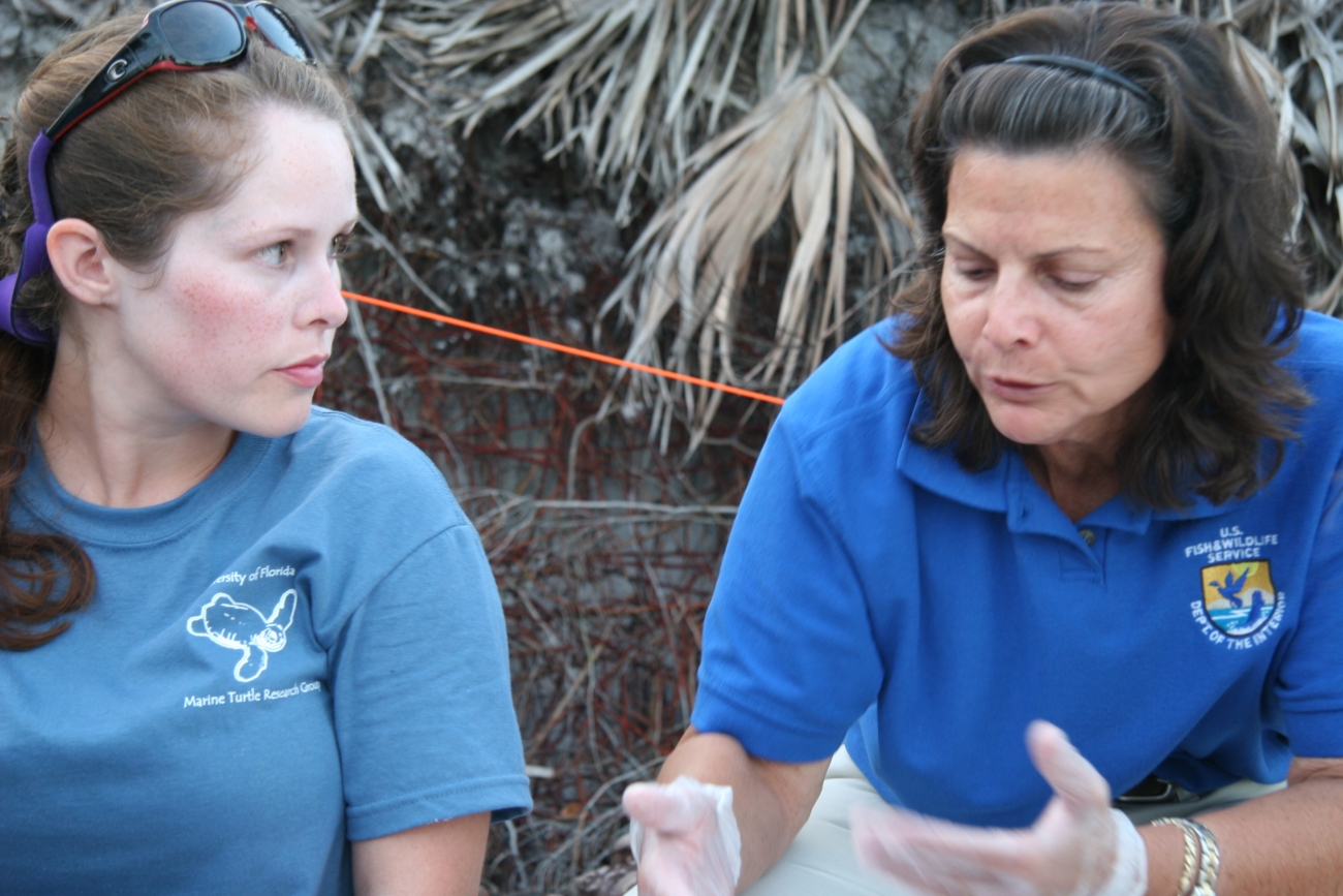 Port St. Joe, FL: USFWS biologist Lorna Patrick and University of Florida student Brail Stephens.