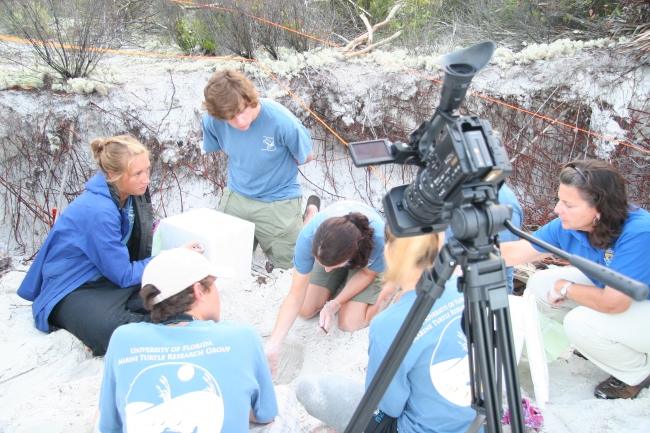 Port St. Joe, FL: A group of University of Florida students help with this sea turtle egg excavation, along with USFWS biologists and a USGS biologist.