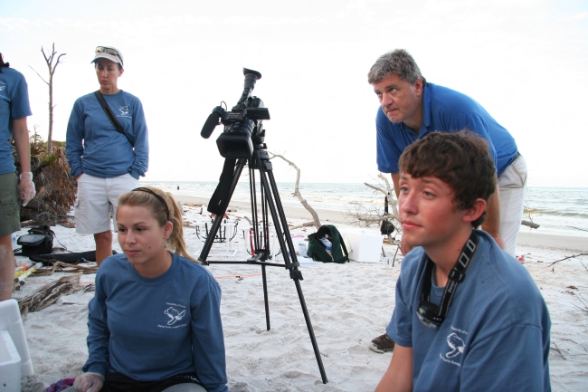 Port St. Joe, FL: Due to the nature of this type of project, only one person at a time can dig up eggs. University of Florida students Hope Ronco and Seth Farris watch while a classmate takes his turn.