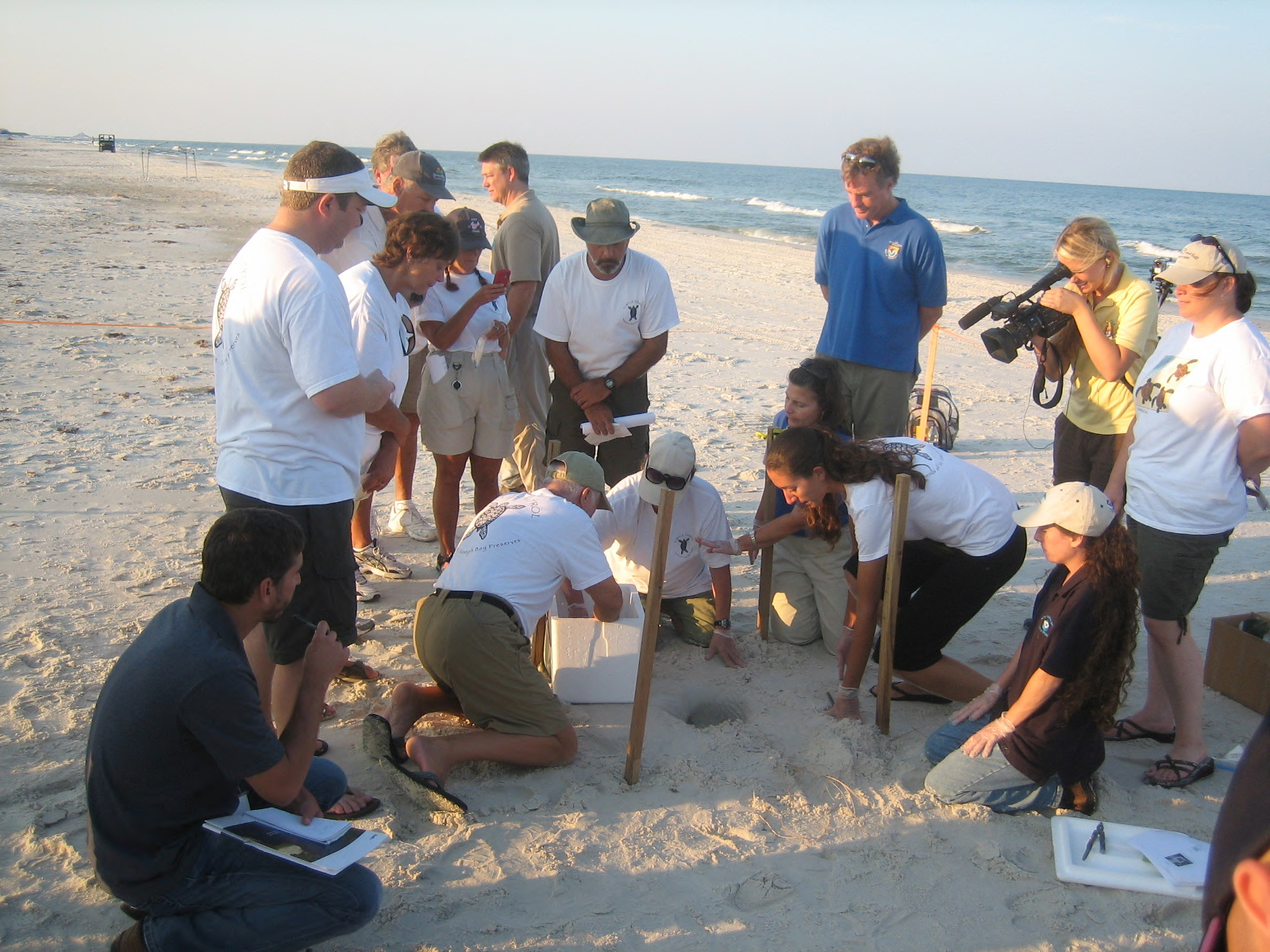 July 9, 2010 - Port St. Joe, FL: Assistant Secretary of the Interior, Tom Strickland (in blue) stands and watches as the nest excavation begins. Photo by Denise Rowell, USFWS.