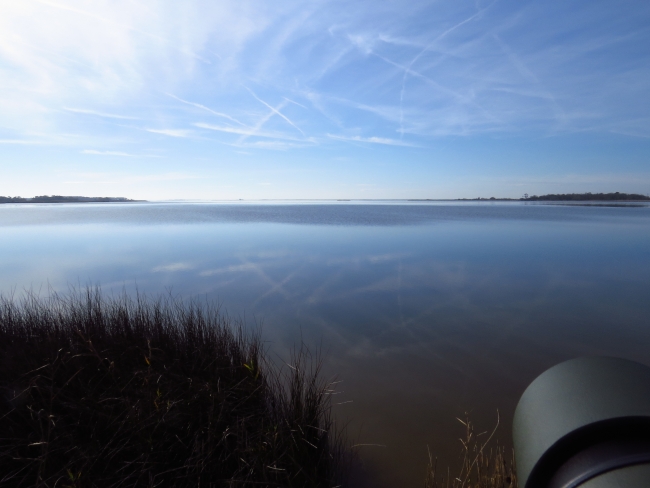Participants observe Back Bay through a spotting scope during a Winter Waterfowl Walk.