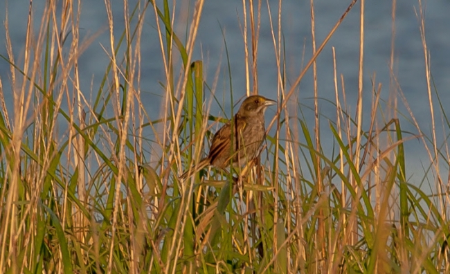 Seaside Sparrow in grasses at Prime Hook NWR