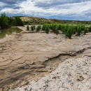 Fine sediment accumulation within and downstream of willow pole plantings at Terlingua Creek.