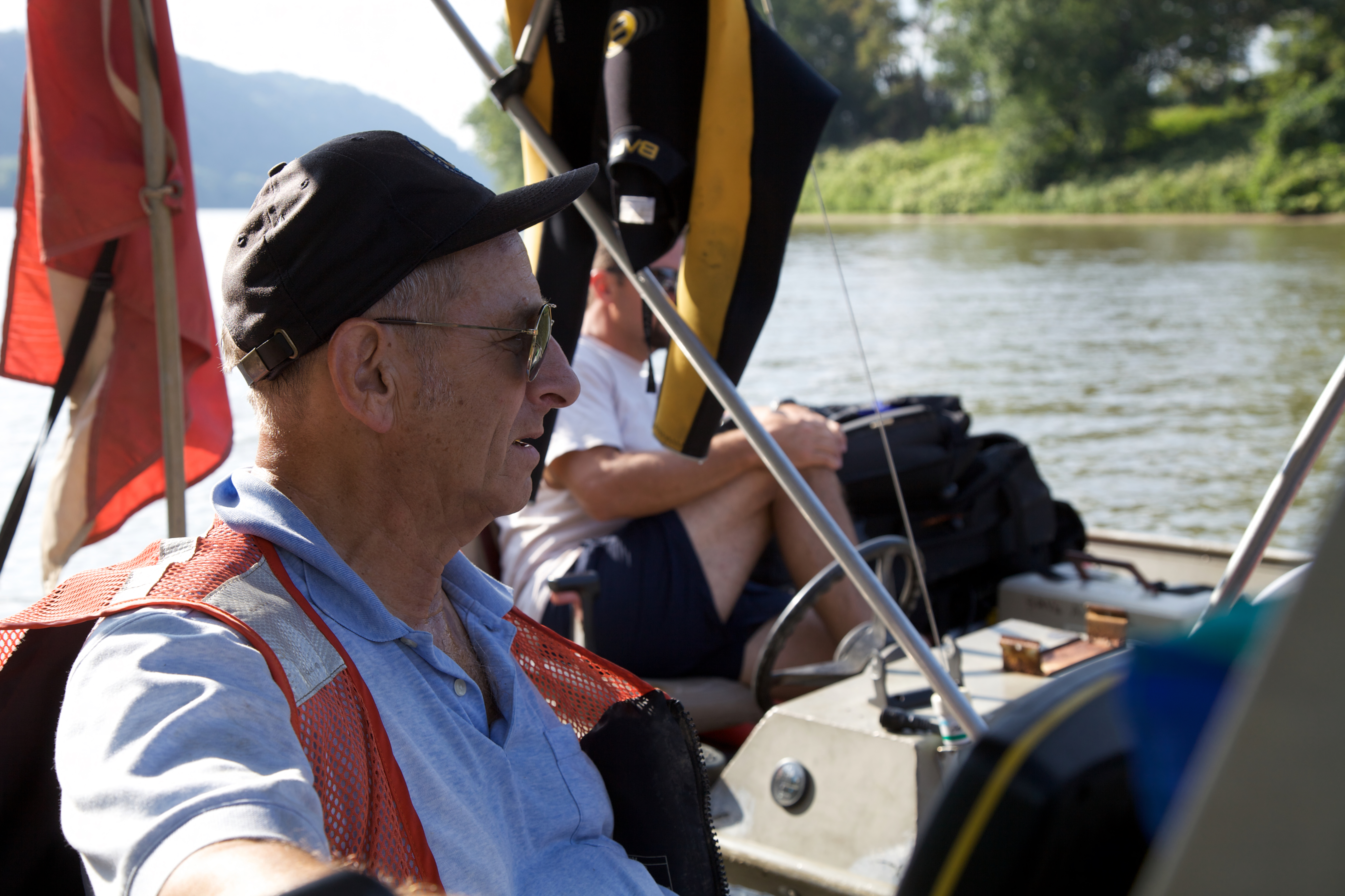 Ohio River Islands National Wildlife Refuge personnel in a boat on the Ohio River.