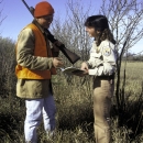 SAND LAKE NWR HUNTING REGULATIONS. A U.S. Fish and Wildlife Service law enforcement officer discusses hunting regulations with a hunter at Sand Lake National Wildlife Refuge in South Dakota. Hunters who abide by these laws ensure that opportunities will c
