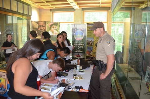 Native youth from Native Youth Community Adaptation Leadership Congress learn about law enforcement jobs with the Service.