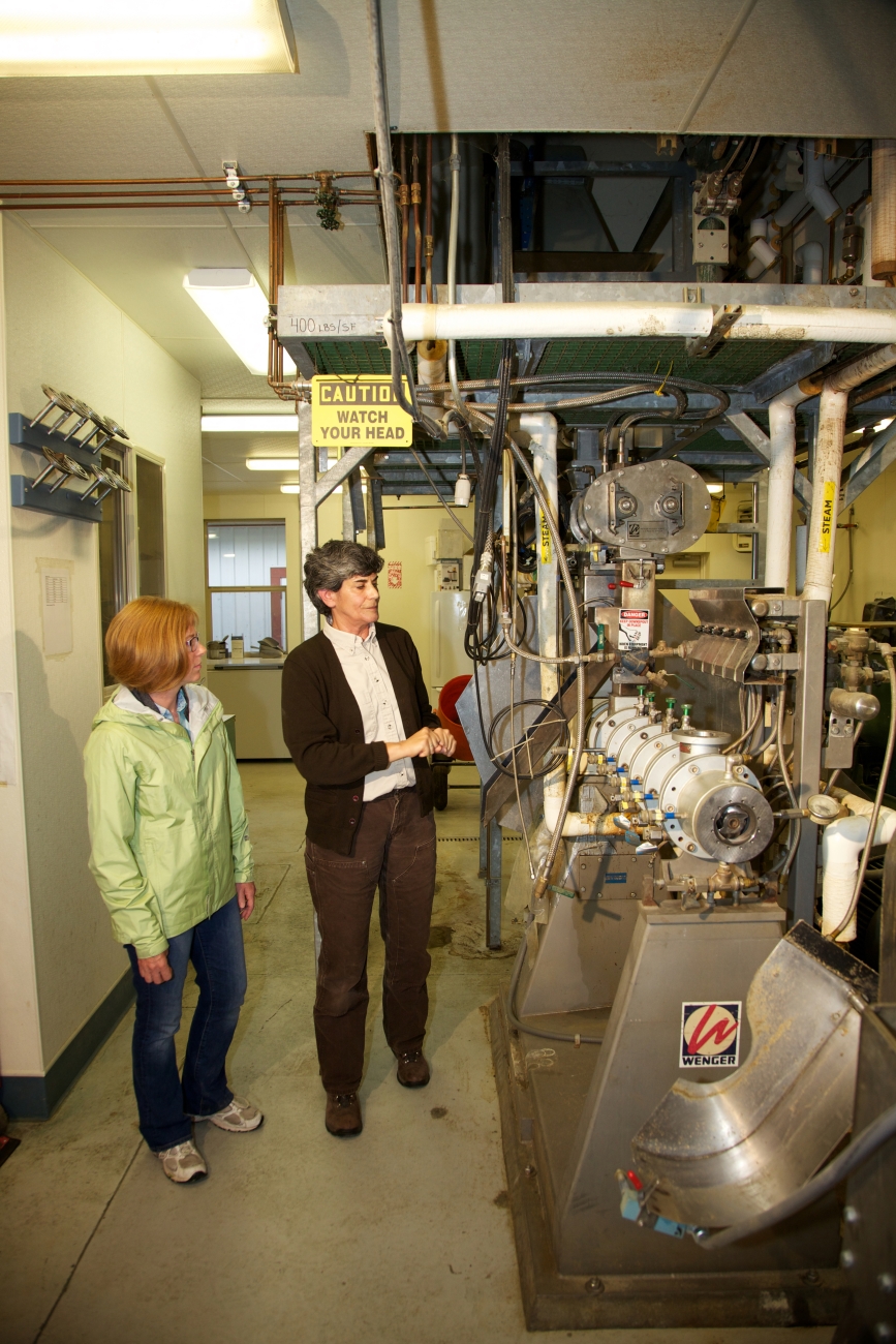 Service personnel with fish nutrition research equipment