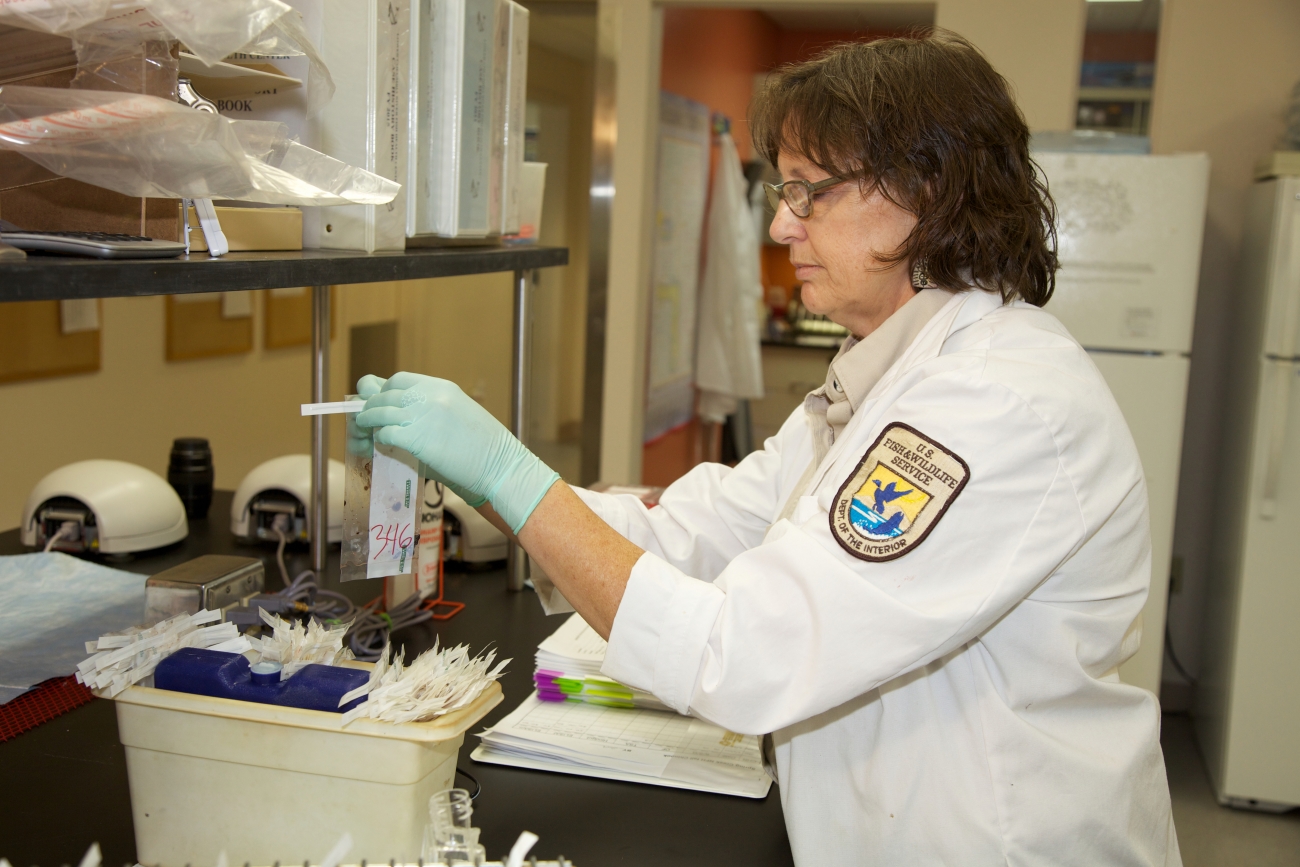 Scientists from the U.S. Fish and Wildlife Service at the Lower Columbia River Fish Health Center conduct genetics, fish health and DNA testing. Pacific Northwest Fisheries.