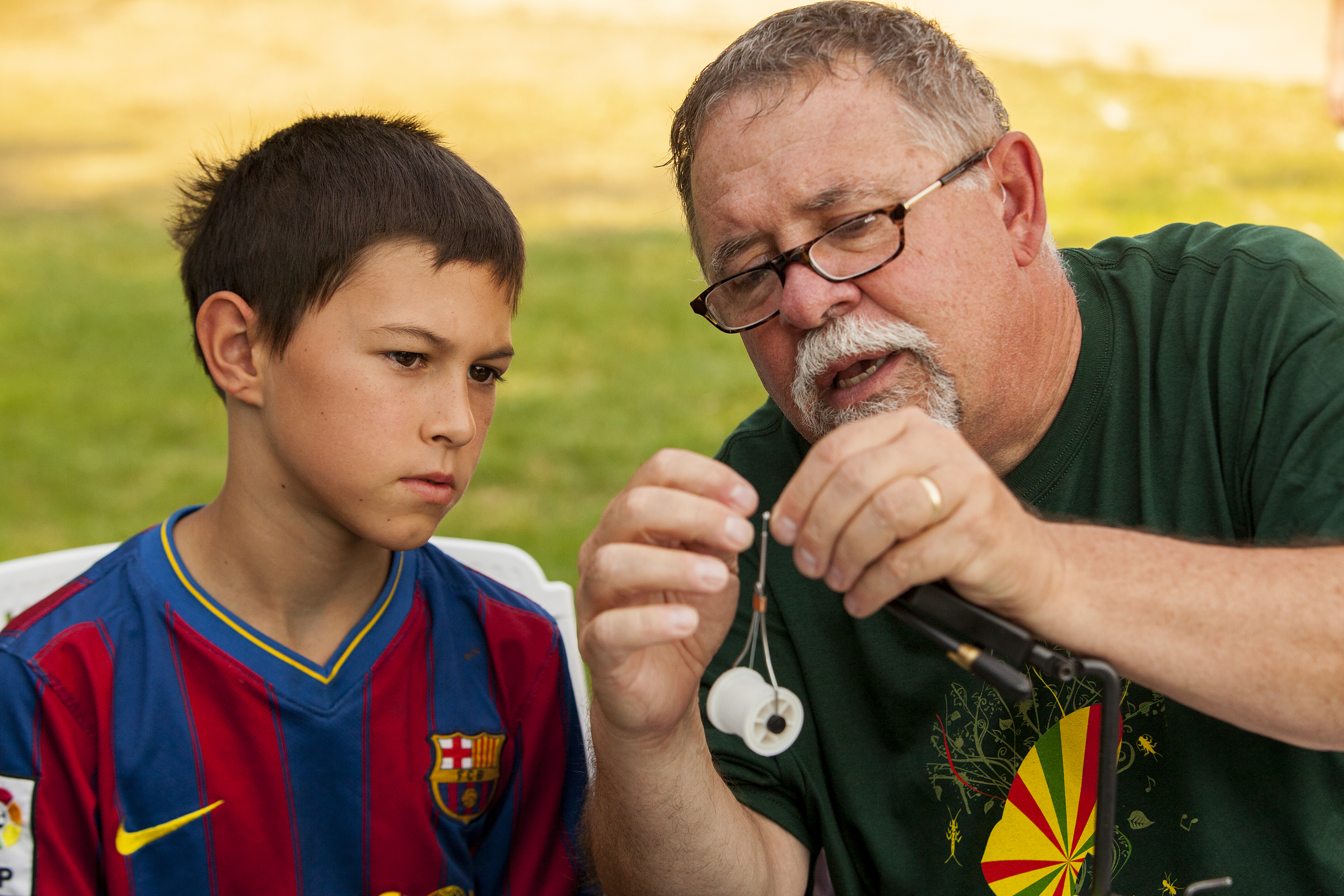 A man shares an outdoor lesson with a young visitor at Tualatin River National Wildlife Refuge in Oregon during the Roots, Rivers and Reggae Festival.