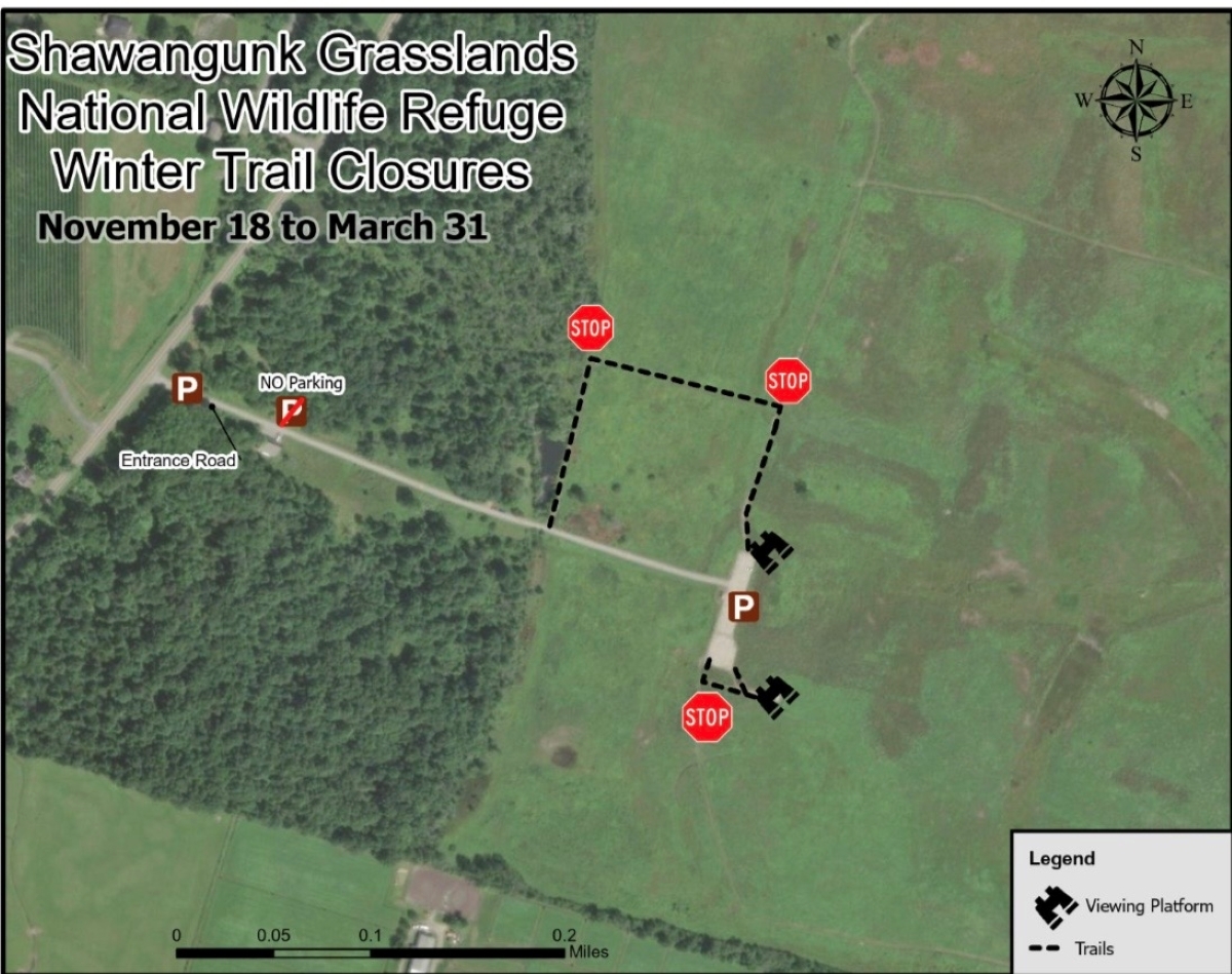 Shawangunk Grasslands NWR Trail Map November 18th, 2025 through March 31st, 2026
