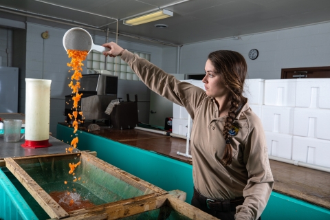 Shocking rainbow trout eggs at Erwin National Fish Hatchery