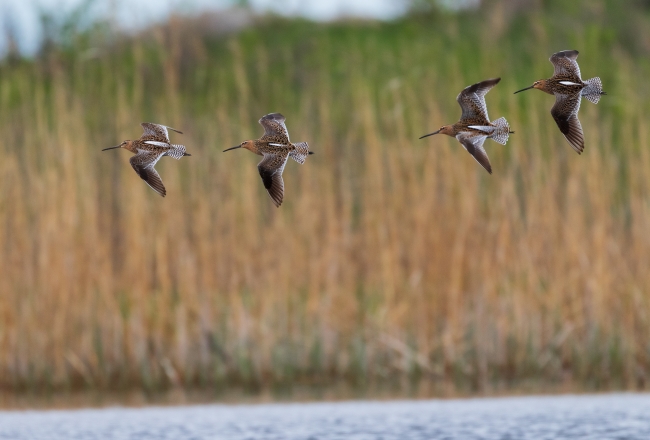 We spotted these short-billed dowitchers flying over a wetland at Big Stone National Wildlife Refuge in Minnesota.