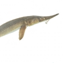 The shovelnose sturgeon is smallest of the ancient sturgeon species in North America and is similar in appearance to pallid sturgeon. It has a flat, shovel shaped snout and has pale, bony plates and large barbels next to its mouth.
