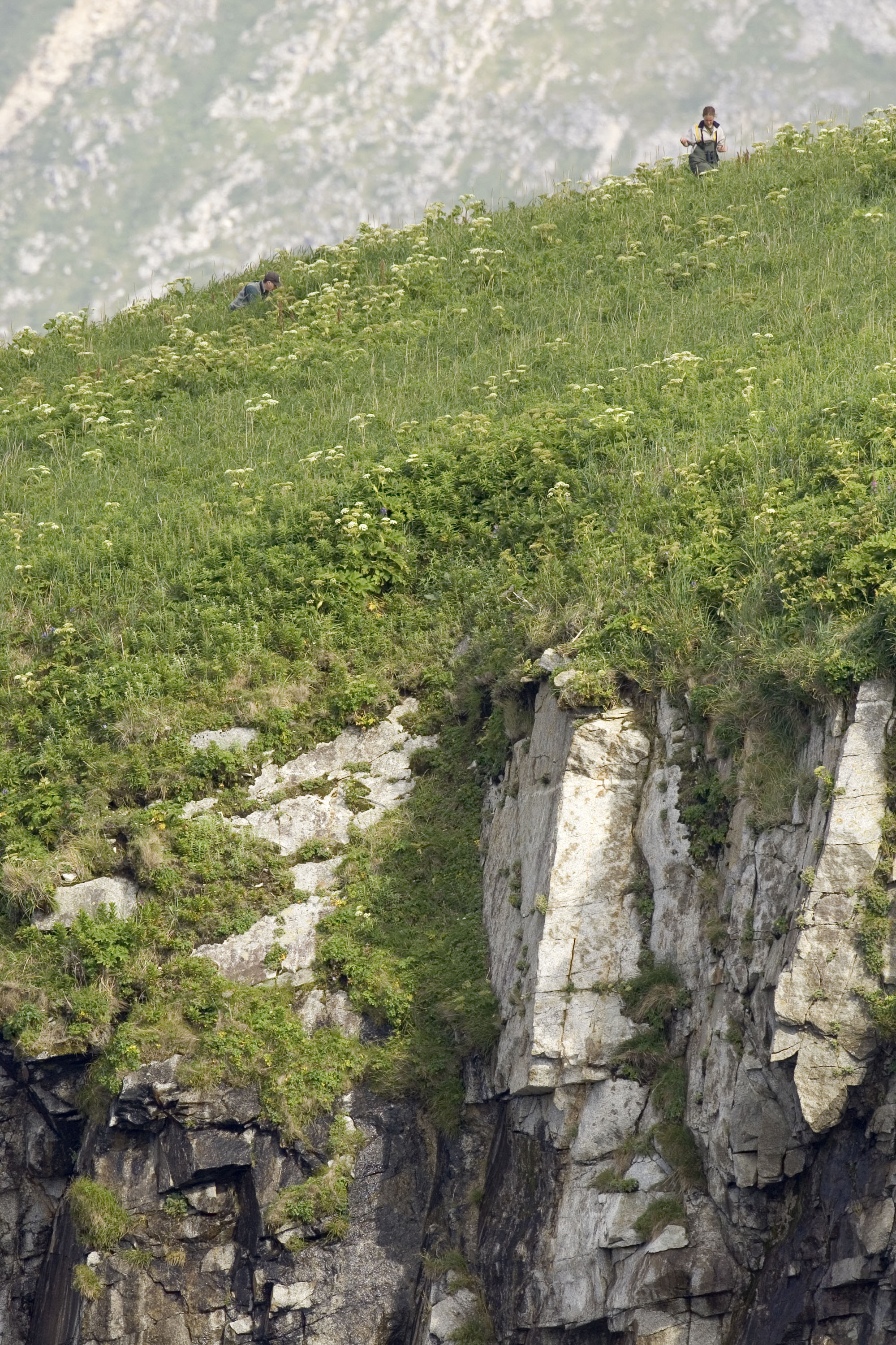 2006, Biologists from U.S. Fish and Wildlife Service search the cliffs for seabird nesting sites