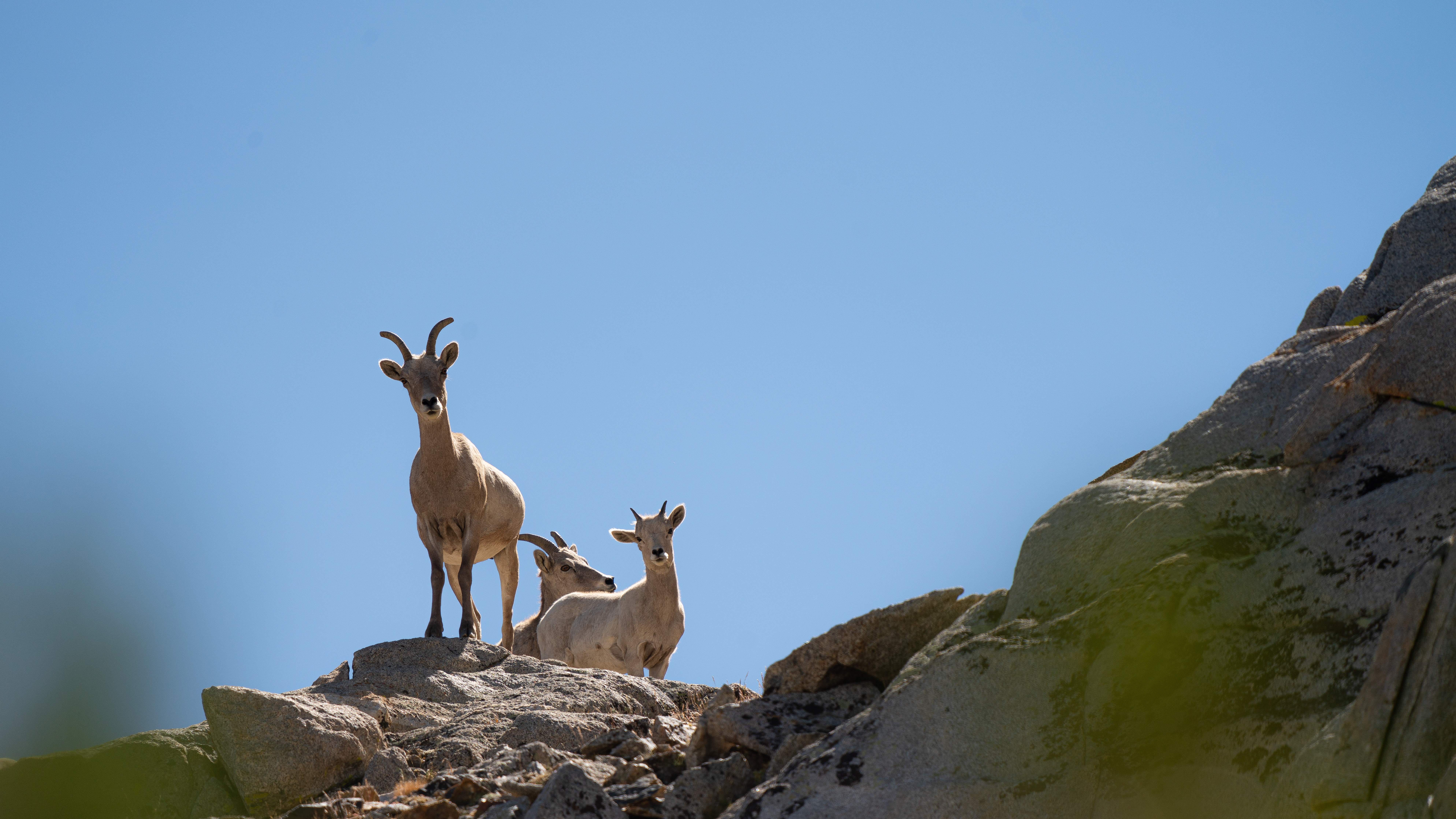 Sierra Nevada Bighorn sheep are federally listed as endangered. This subspecies of bighorn sheep has a historical range in the Sierra Nevada mountains from Sonora Pass in the north, to Olancha Peak in the south. These bighorn sheep live in elevations that range from 4,000-14,000 feet and have adapted to live in harsh mountain conditions. Predation, environmental factors, as well as concern of disease transmission from domestic sheep pose challenges to species recovery. Credit: Nathan Hurner/USFWS
