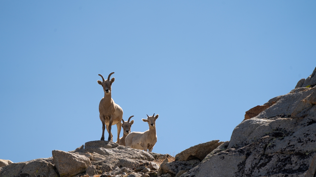 Sierra Nevada Bighorn sheep are federally listed as endangered. This subspecies of bighorn sheep has a historical range in the Sierra Nevada mountains from Sonora Pass in the north, to Olancha Peak in the south. These bighorn sheep live in elevations that range from 4,000-14,000 feet and have adapted to live in harsh mountain conditions. Predation, environmental factors, as well as concern of disease transmission from domestic sheep pose challenges to species recovery. Credit: Nathan Hurner/USFWS