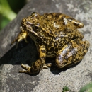A Sierra Nevada yellow-legged frog suns itself on a rock