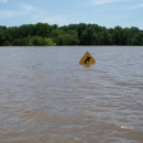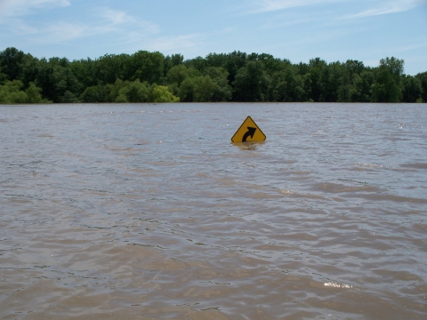 Sign at Swan Lake National Wildlife Refuge is covered in water