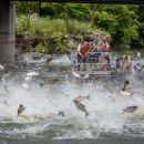 U.S. Fish and Wildlife Service personnel net Silver carp jumping in the Fox River.