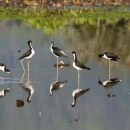 Six hawiian stilts in a wet fallow taro patch