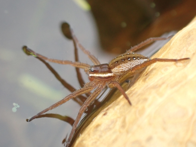 A six-spotted fishing spider at Miller Creek near Vogel Lake, Kenai National Wildlife Refuge.