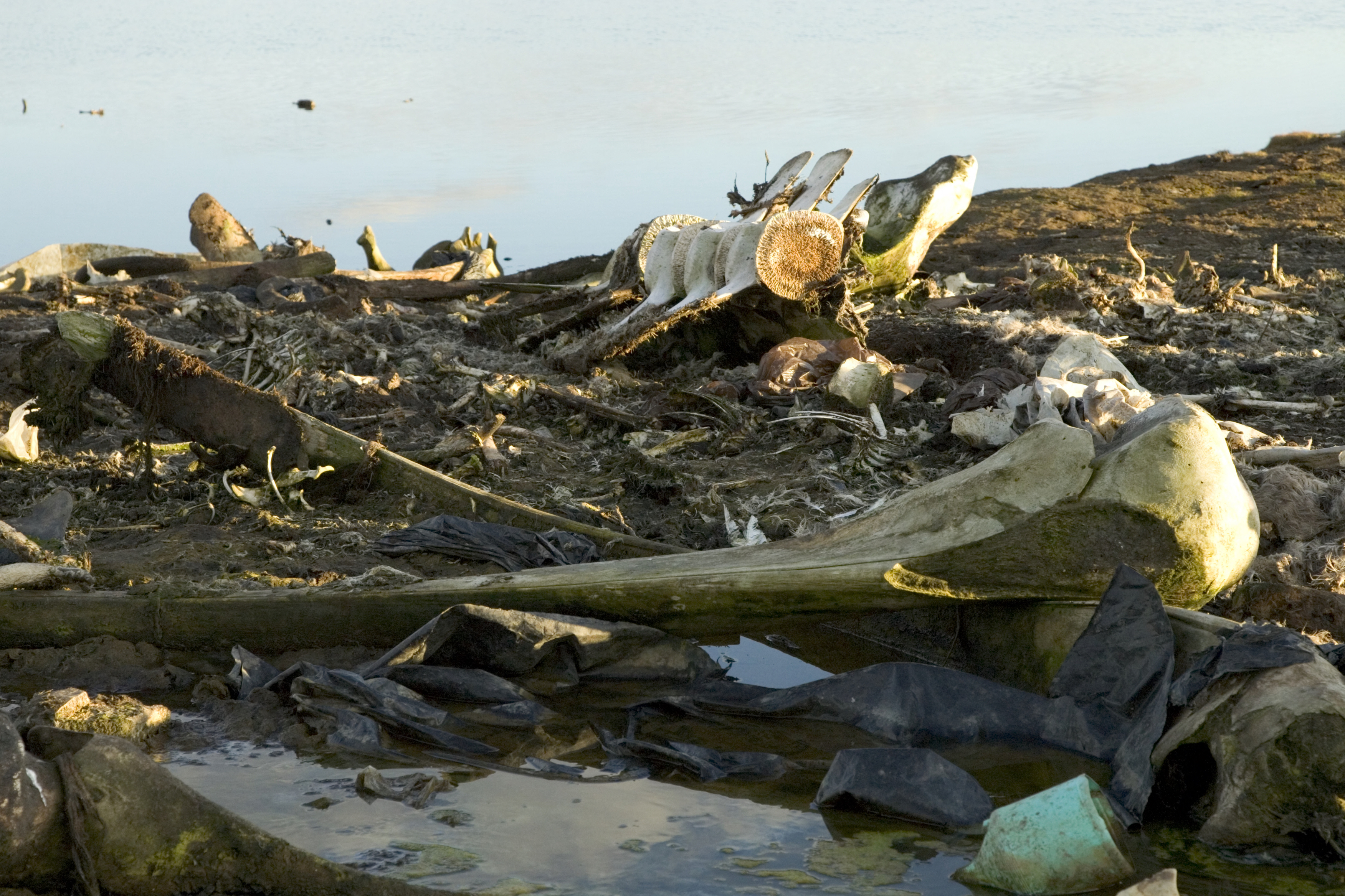 Skeletal remains along the shore