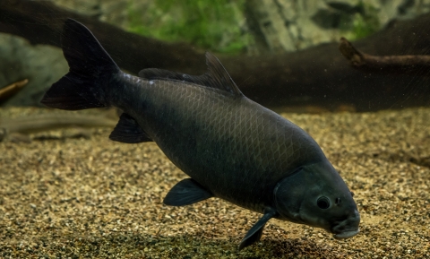 The smallmouth is a heavy-bodied fish with large scales, black eyes, no barbels, and an underslung sucker mouth. Smallmouth buffalo at Gavins Point NFH.