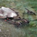 Three snorkellers conduct a survey in the Entiat River.