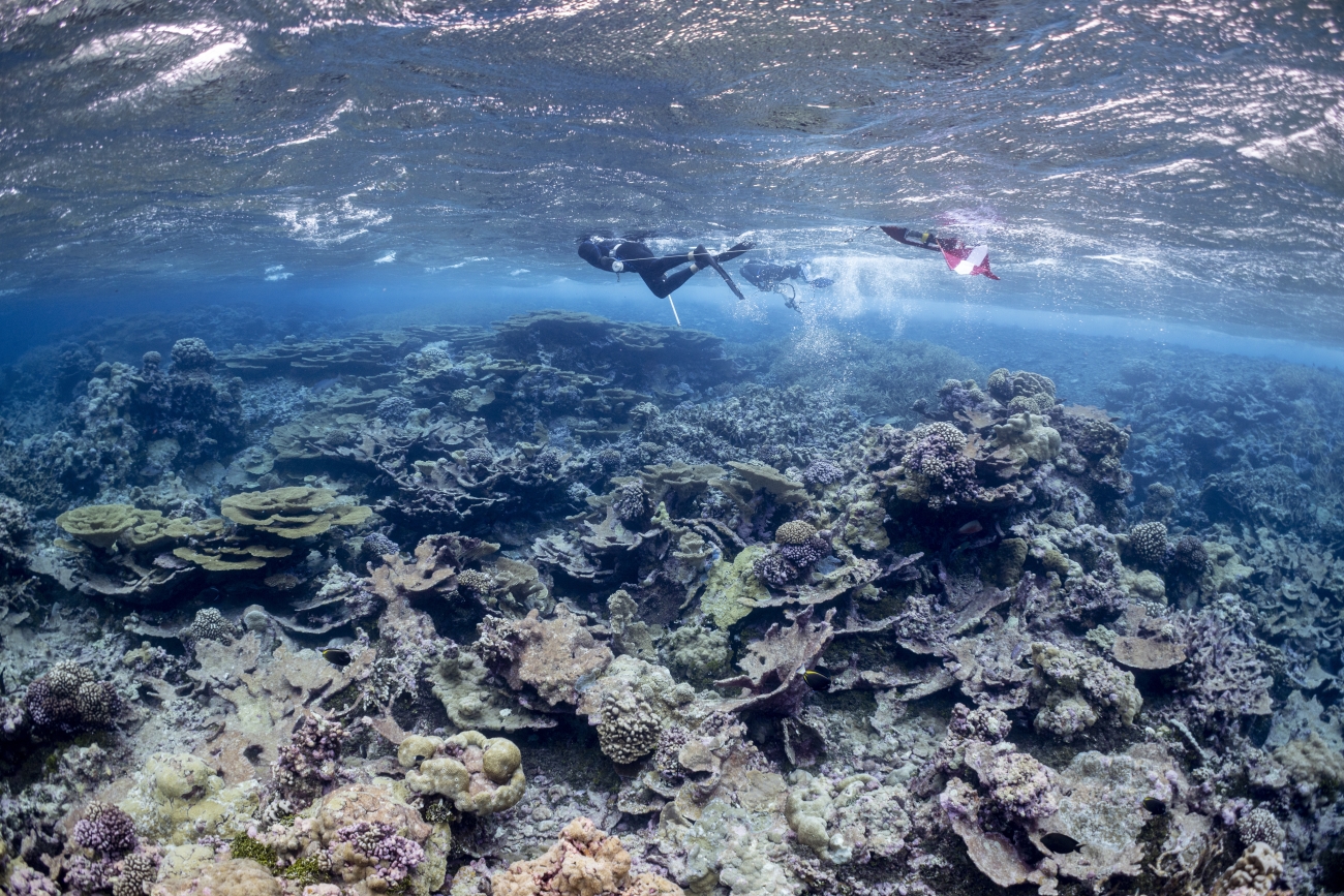 Snorkelers surveying the reef