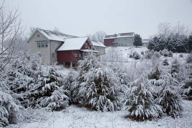 A dusting of snow covers buildings at the National Conservation Training Center.