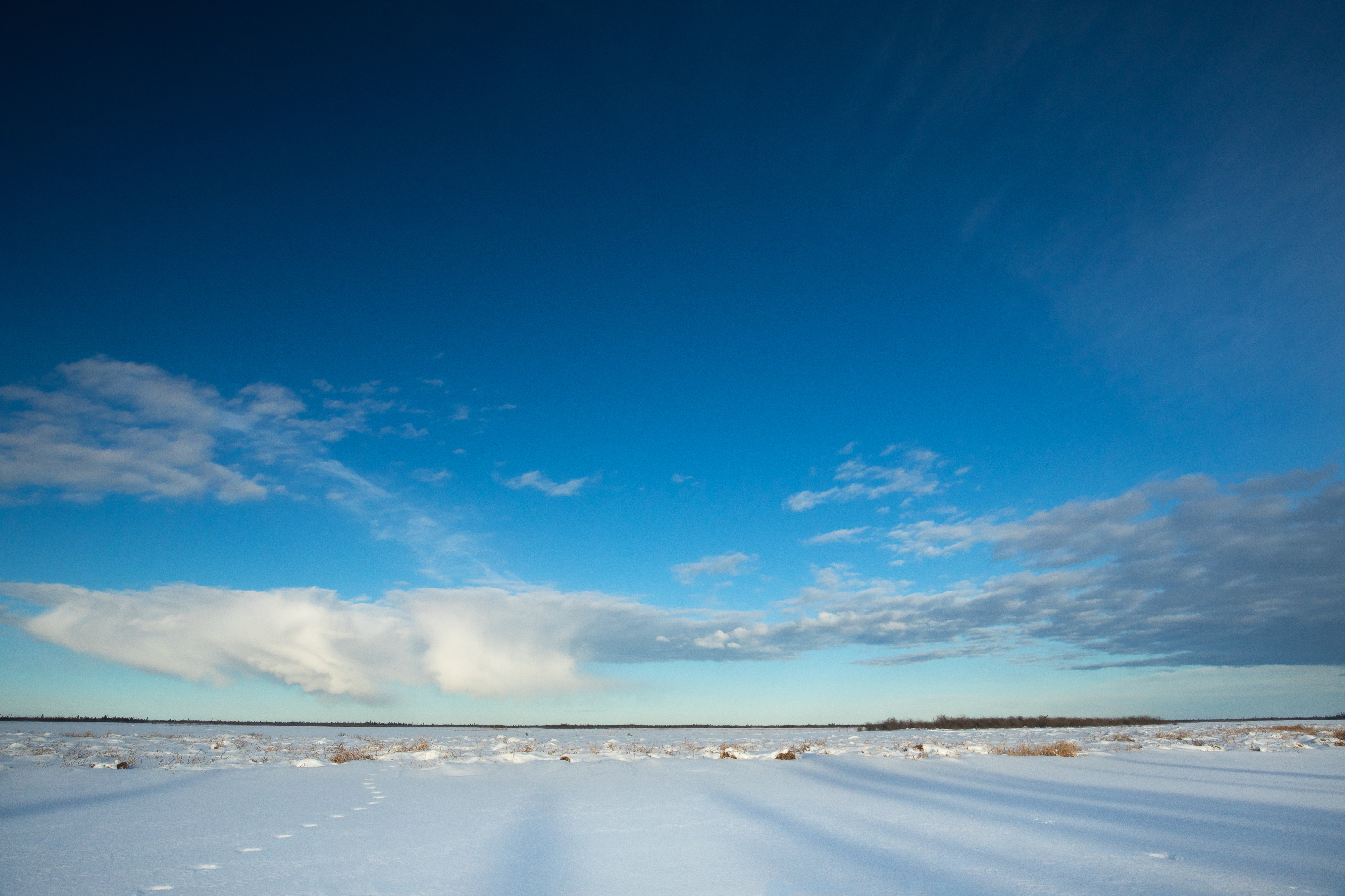 Snowshoe hare tracks in the snow. Lynx prey mostly on hare, and are tied to their population growth and crashes. Lynx Project At Yukon Flats National Wildlife Refuge.