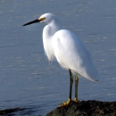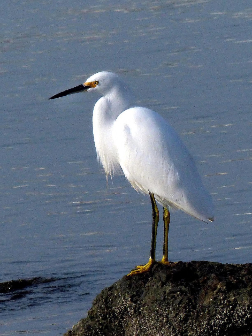 Among the most elegant of the herons, the slender Snowy Egret sets off immaculate white plumage with black legs and brilliant yellow feet.