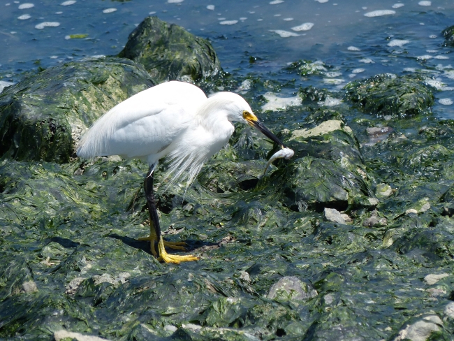 Among the most elegant of the herons, the slender Snowy Egret sets off immaculate white plumage with black legs and brilliant yellow feet.