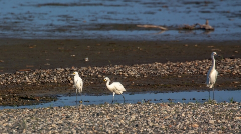 Snowy Egrets on shore