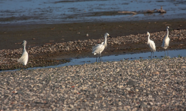 Snowy Egrets on shore
