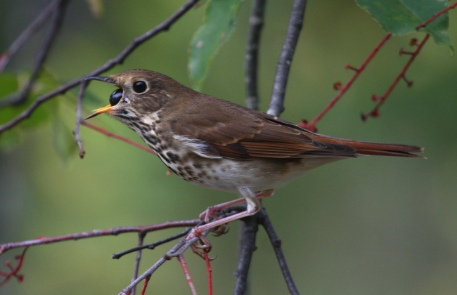 Song bird eating berry.