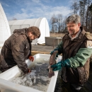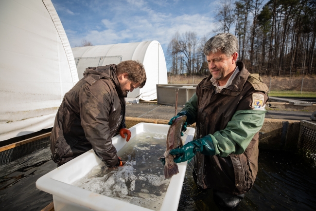 Sorting ripe from unripe trout. The process of sorting spawning trout from non-spawning trout