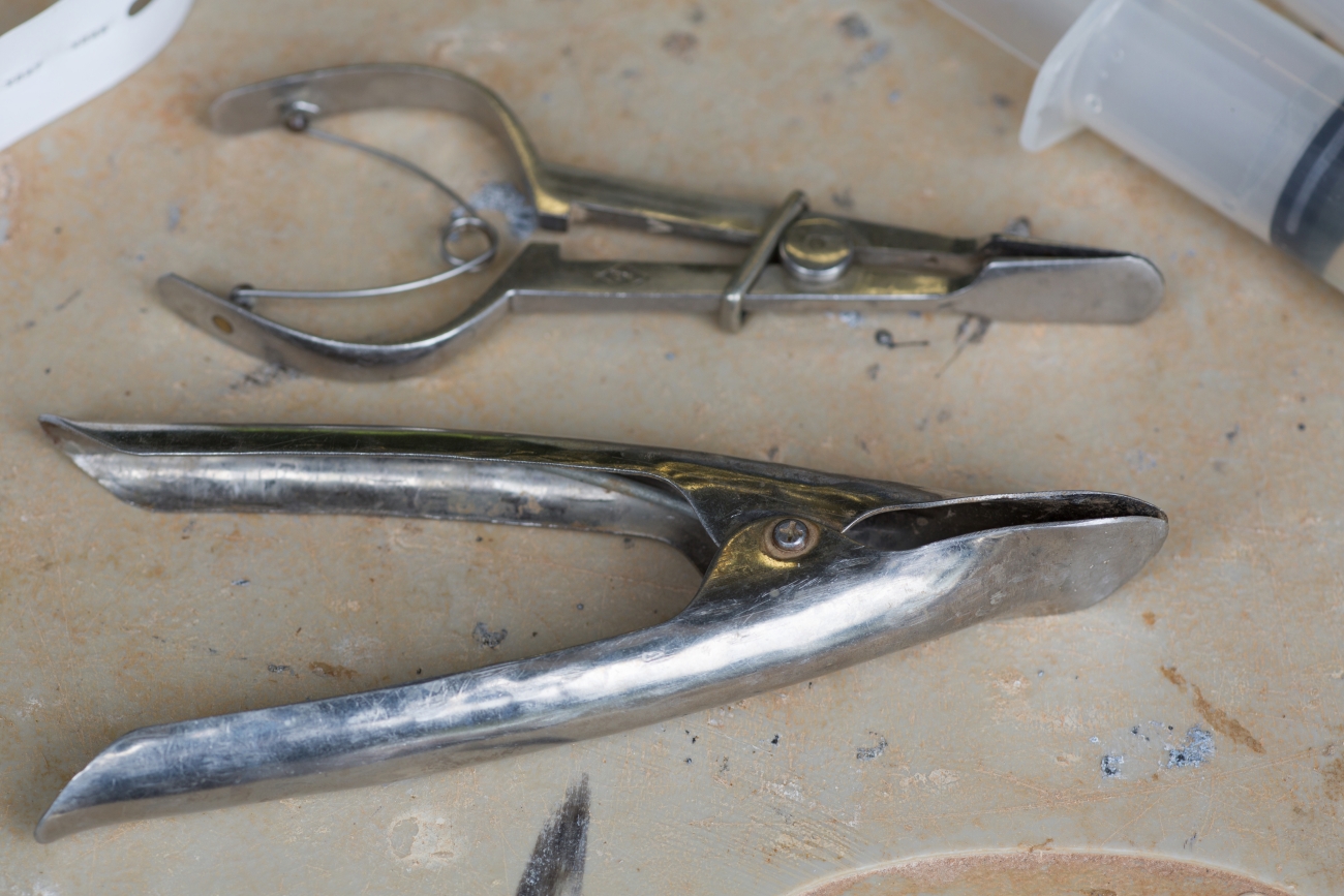 Speculum used to assist in extracting glochidia from freshwater mussel