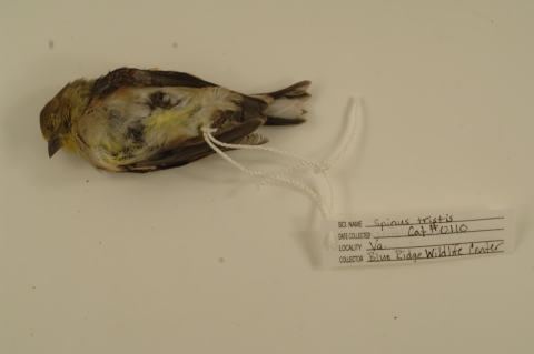 NCTC Migratory Birds Teaching Collection: Order: Passeriformes Family: Fringillidae Genus: Spinus Species: tristis Site Location: Blue Ridge Wildlife Center Location State: VA