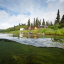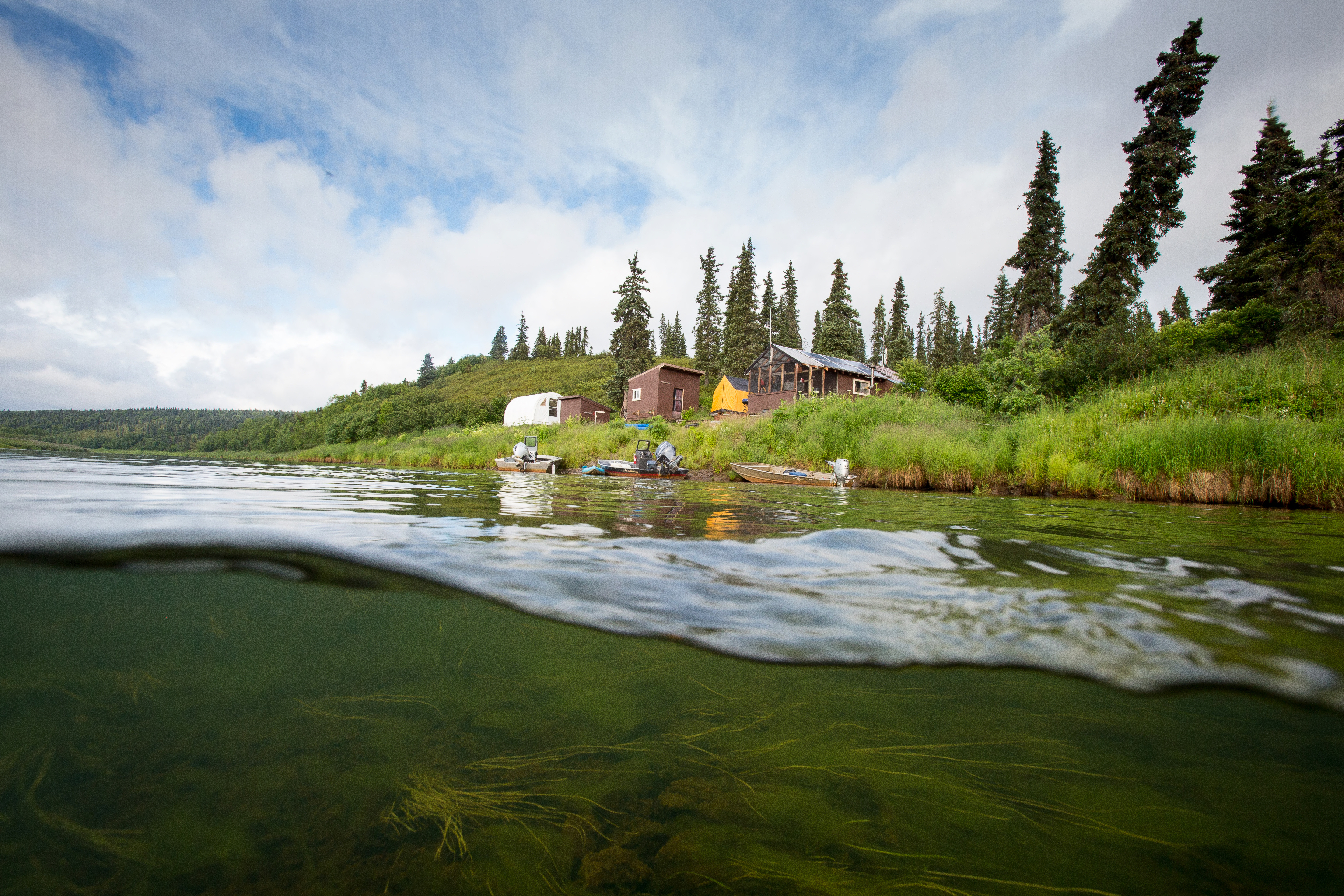 Split shot of Andreafsky River fish camp