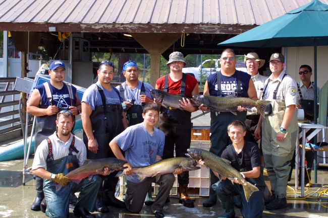 Member of the Spokane Tribe collected surplus fish from Leavenworth National Fish Hatchery in 2008.