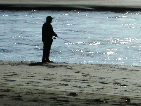 The sihouette of a sportfisherman is shown at the Sooes River.