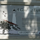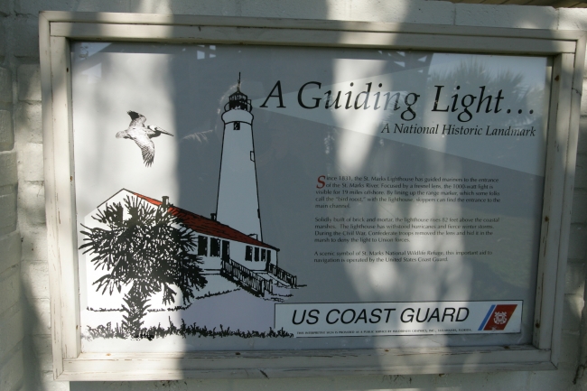 A descriptive sign about the lighthouse, resting in the cool shade.