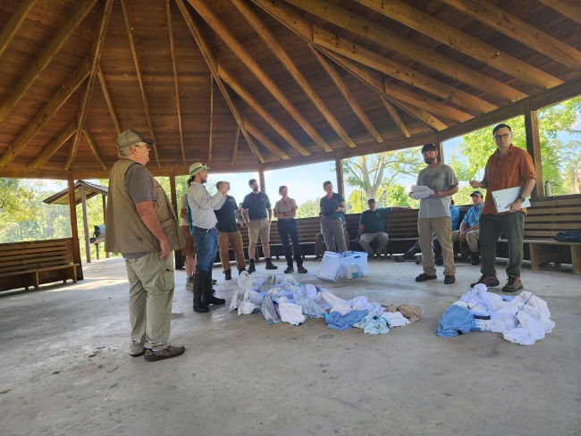 Team members of the Louisiana Pinesnake Stakeholders Consortium prepare to release the 2025 cohort of Louisiana pinesnakes.