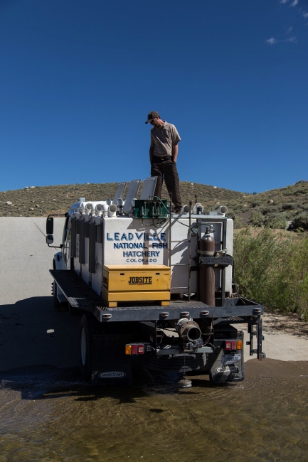 Stocking fish to replenish at Leadville National Fish Hatchery.
